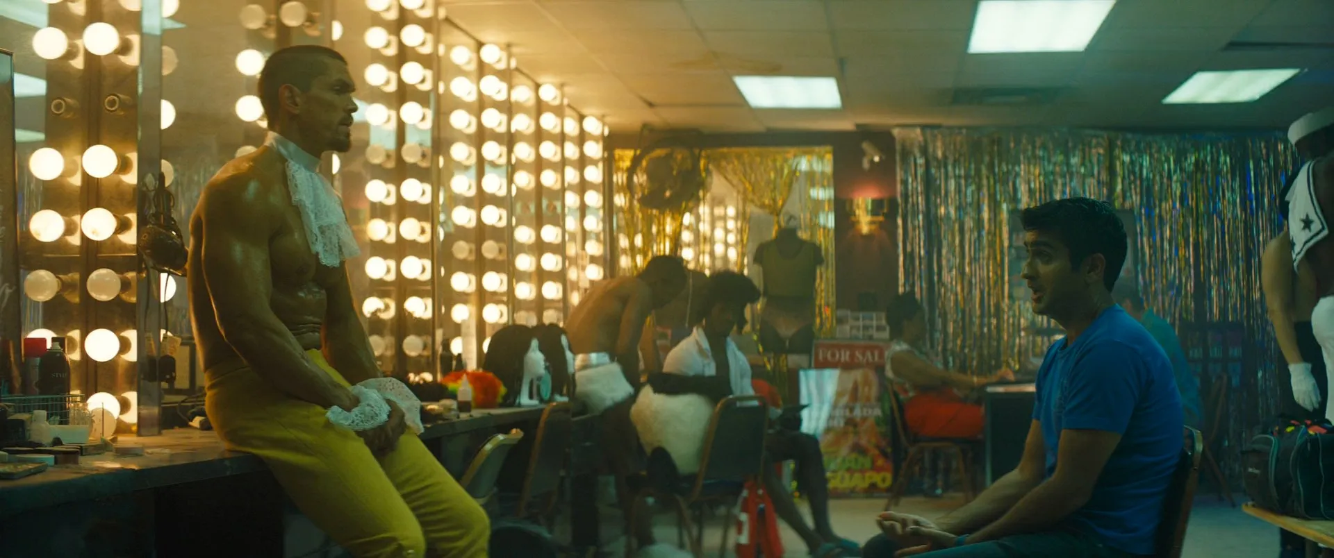 # Stars Cast: Dave Bautista as Vic, Kumail Nanjiani as Stu, Mira Sorvino as Angie McHenry, Natalie Morales as Nicole, Iko Uwais as Teijo, Betty Gilpin as Becca, Karen Gillan as Morris, Jimmy Tatro as Richie Sandusky, Steve Howey as Felix, Rene Moran as Amo Cortez, Amin Joseph as Leon, Christine Horn as Upscale Hotel Manager, Trevor Shand as Disc Jockey, Jared Logan as Complicated Directions Guy, Kyle Zingler as Drunk Jerk, Halleta Alemu as Hot Sorority Girl, Melody Peng as Hot Sorority Girl, Sean Oey as Science Project Boy, Robert Harvey as Snoring Old Man, Noah Benjamin as Distraught Man, Jennifer L. Marshall as Dog Owner, Roger Payano as Eye Doctor, Patricia French as Grandmother, Victoria Anastasi as USC Student, Julia Vasi as USC Student, Bruno Rose as Bartender, Amber Chardae Robinson as Amber, Fernando Martinez as Alamitos Gangbanger, Mike Endoso as Alamitos Gangbanger, Scott Lawrence as Dr. Branch, Joshua Mikel as Ponytail Goon, Apollo GT as Male Stripper, James William Ballard as Clippers Fan / Shooter, Darin Ferraro as Drug Dealer, Jennifer Riker as Art Collector, Jason-Jamal Ligon as Gallery Patron, Vince Pisani as Gallery Patron, Pete Dondero as Sriracha Night Shifter, Si Chen as Sriracha Night Shifter, Malachi Jr. as Uber Driver Tariq, Daniel Suárez as SUV Uber Driver, Austin Dillon as SUV Uber Driver, Ty Dillon as SUV Uber Driver, Roscoe Johnson as LAPD Beat Cop, Stroker as Pico, William DeAtley as Josh (uncredited), Rick Shuster as Helicopter Pilot (uncredited), Sam Medina as Goon (uncredited)