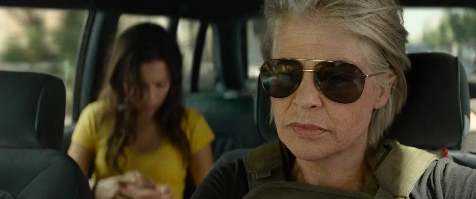 Linda Hamilton as Sarah Connor, Arnold Schwarzenegger as T-800 / Carl, Mackenzie Davis as Grace, Natalia Reyes as Daniella "Dani" Ramos, Gabriel Luna as Gabriel / REV-9, Diego Boneta as Diego Ramos, Ferran Fernández as Flacco, Tristán Ulloa as Felipe Gandal, Stephanie Gil as Young Grace (10yrs), Tomás Álvarez as Lucas / Floor Guard, Tom Hopper as Hadrell, Alicia Borrachero as Carl's Wife, Enrique Arce as Dani Ramos's Father, Manuel Pacific as Mateo, Fraser James as Major Dean, Pedro Rudolphi as Cholo, Diego Martínez as Cesar Mateo, Kevin Medina as Pepito, Steven Cree as Rigby, Matt Devere as US Border Riot & Locker Officer, Karen Gagnon as AFB Operator, Neil Corbould as BBQ Host Dad, Lorna Brown as US Border - Agent Brenner, Stuart McQuarrie as Craig - Factory Supervisor, José Cerós as Dam Worker, Shadday López as Diego's Friend at Workstation, Pedro Hernández as Foreman Silvio, Mariah Nonnemacher as BBQ Female Guest, Peter Schueller as US Border Gate Officer, Jacques A. Nevils as US Border Agent, Daniel Ibáñez as Miguel, Mona Martínez as Old Street Seller, Francis McBurney as USAF Loader, Mikey Bharj as ICE Medic, Samantha Coughlan as ICE Medic, James Barriscale as US Border X-Ray Officer, Alejandra Mayo as Mexican Mum on Train, Angelica Andreu as Bario Neighbor, Iria Calero as Guatemalan Girl (10yrs), Dan Stroiman as Airman Graham / Tech, Tábata Cerezo as Julia, Nicholas Wittman as F-35 Pilot, Daniel Ortiz as Pharmacist, Mark Hesketh as Texas Ranger, Peter Ormond as Texas Ranger, Joaquín Molla as Detainee Axel, Alberto Da La Sinda as Oldsmobile Driver, Mario de la Rosa as Mexico City Cop, Zoltán Téglás as US Border Desk Sergeant, Blair Jackson as JP, Phillip Garcia as Rusty, Tarnue Massaquoi as Zack Hardy, Cleveland Berto as T. Gill, Christine Horn as Owens, Pete Ploszek as Ackers, Mark Weiler as Surgeon, Kacy Owens as Maggie Curtis, Stephen Oyoung as Technician Curtis, Anisha Gibbs as Cohort, Anthony Oh as Scavenger with Club, Josh Wood as Pilot #2, Aaron Kunitz as John Connor (voice), Edward Furlong as John Connor Reference, Geneviève Doang as Resistance Nurse, Georgia Simon as Grace's Mother (voice), Rochelle Neil as C-5 Co-Pilot (uncredited), Brett Azar as T-800 (uncredited), Jude Collie as Young John Connor (uncredited)