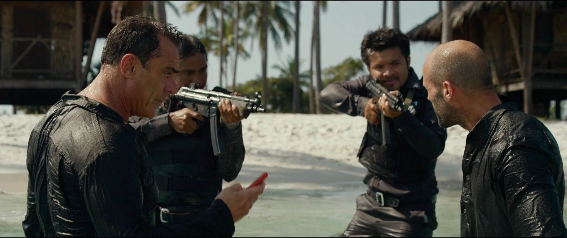 Jason Statham as Arthur Bishop, Jessica Alba as Gina, Tommy Lee Jones as Max Adams, Michelle Yeoh as Mei, Natalie Burn as Natalie Stone, Rhatha Phongam as Courier, John Cenatiempo as Jeremy, Bonnie Zellerbach as Headmistress, Vithaya Pansringarm as Prison Warden, Aaron Brumfield as Adam's Head of Security, Andrew Stehlin as Rio Thug #5, Sam Hazeldine as Riah Crain, Atanas Srebrev as Trawler Captain, Anteo Quintavalle as Frank, Femi Elufowoju Jr. as Krill, Toby Eddington as Adrian Cook, Stuart Thorp as Rio Thug #1, Alex Kuzelicki as Rio Thug #2, Brahim Achabbakhe as Rio Thug #3, Thomas Kiwi as Rio Thug #4, Francis Tonkala Tamouya as Slender Psycho (Nuujib), Tais Rodrigues Dias as Hang Glider, Lynette Emond as Sexy Thai Assistant, Allan Poppleton as Dice Prisoner, Maethi Thapthimthong as Young Contruction Worker, Soji Ikai as Skinny Prisoner, Chatchawai Kamonsakpitak as Prison Guard, Yothin Udomsanti as Deckhand, Rachel O'Meara as Leasing Agent, Armin Parvin as Merc # 3, Alexander Winters as Merc #2, Robert Gerrits as Adam's Guard (uncredited)